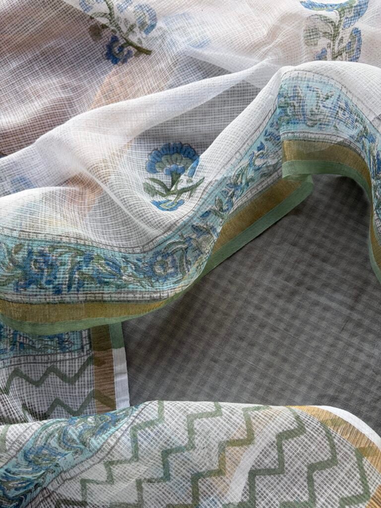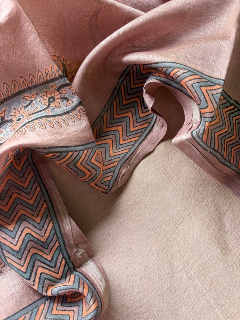 PRINTED SILK COTTON TOP AND LINEN DUPATTA