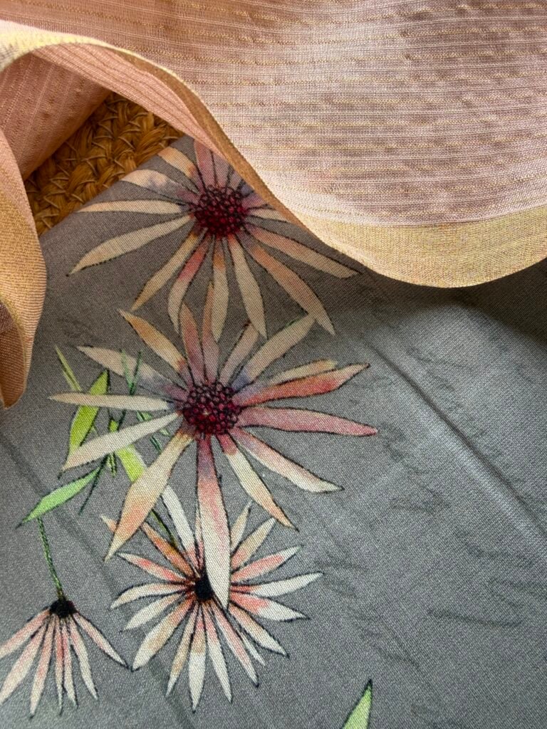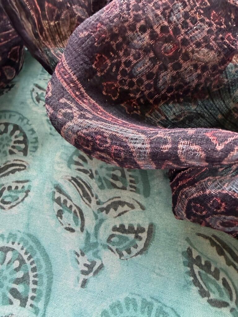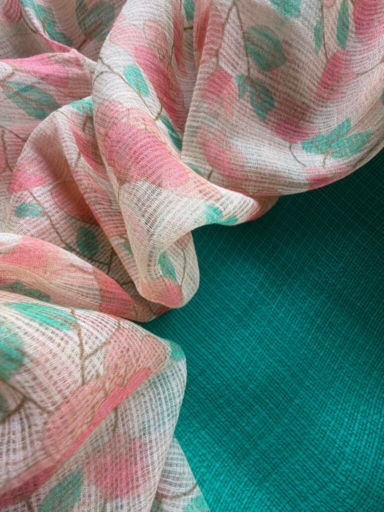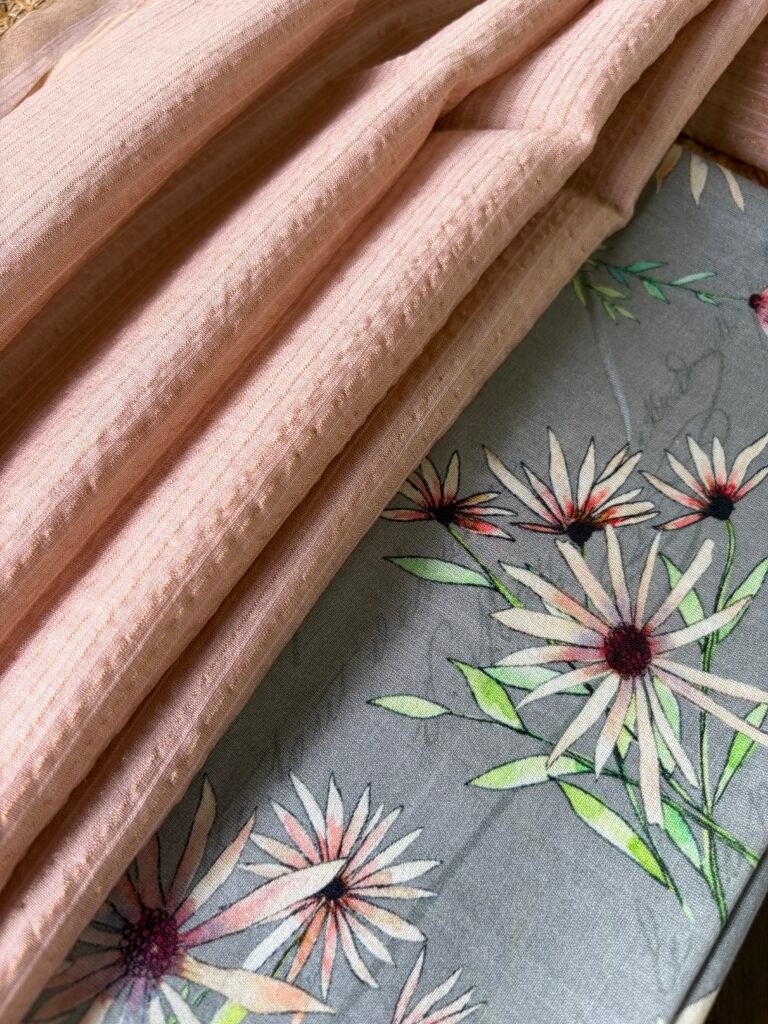 PRINTED SILK COTTON TOP AND LINEN DUPATTA
