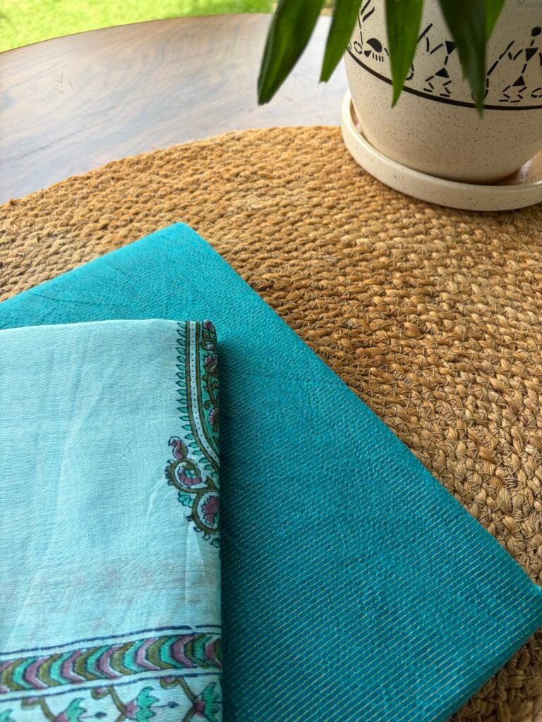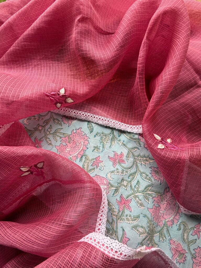 HANDBLOCK PRINTED TOP AND KOTA EMBROIDED DUPATTA