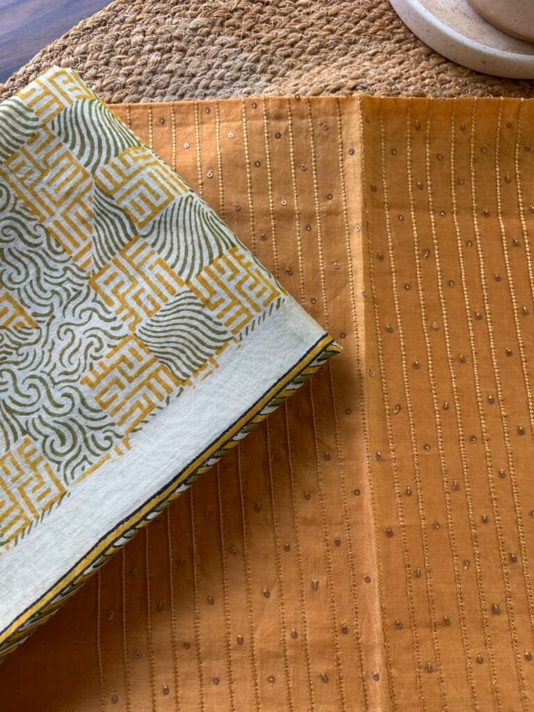 PRINTED SILK COTTON TOP AND LINEN DUPATTA