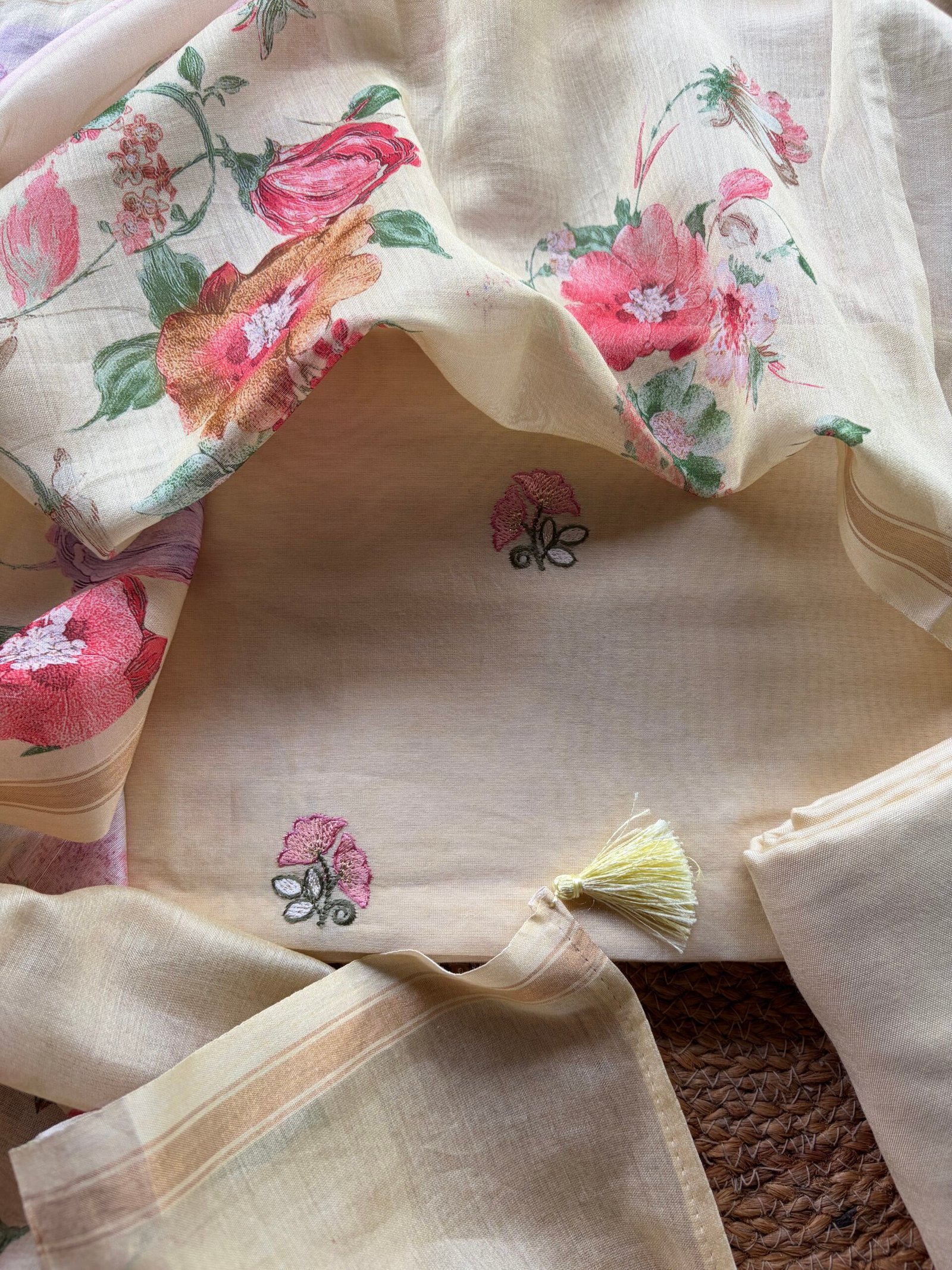Dupatta: Chanderi printed dupatta with tassels and zari border