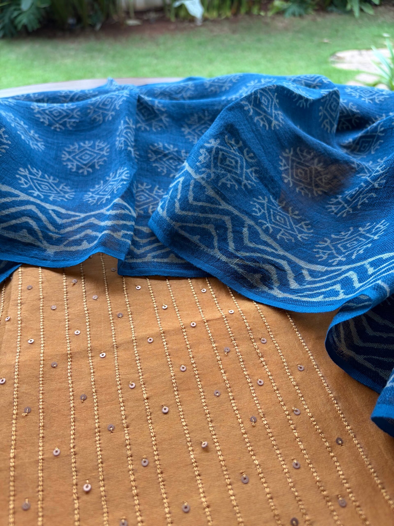CHANDERI SILK COTTON TOP AND LINEN DUPATTA