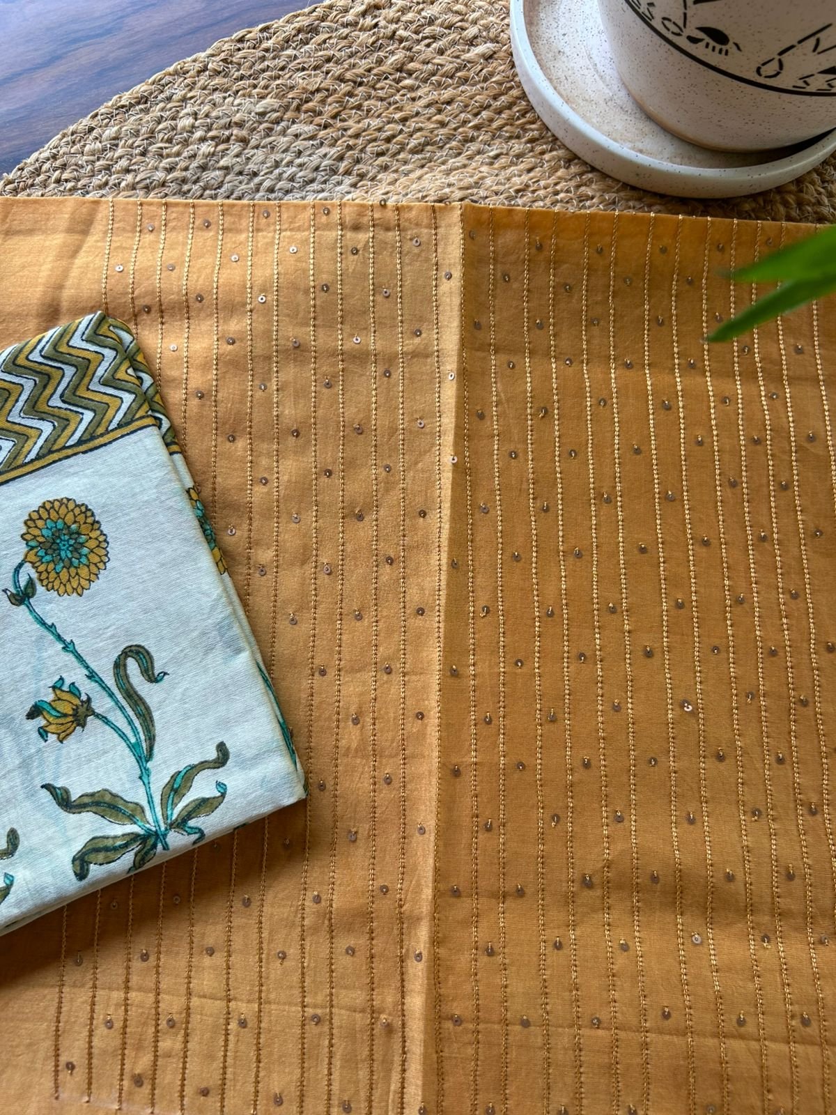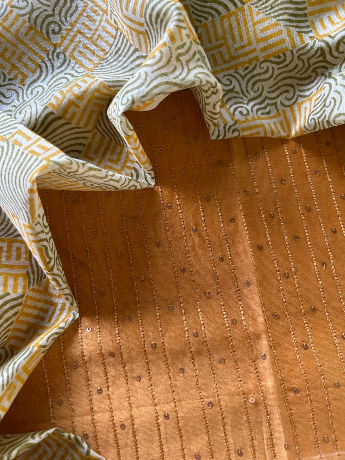 Top :  Chanderi silk cotton with neck embroidery  2.5 meters