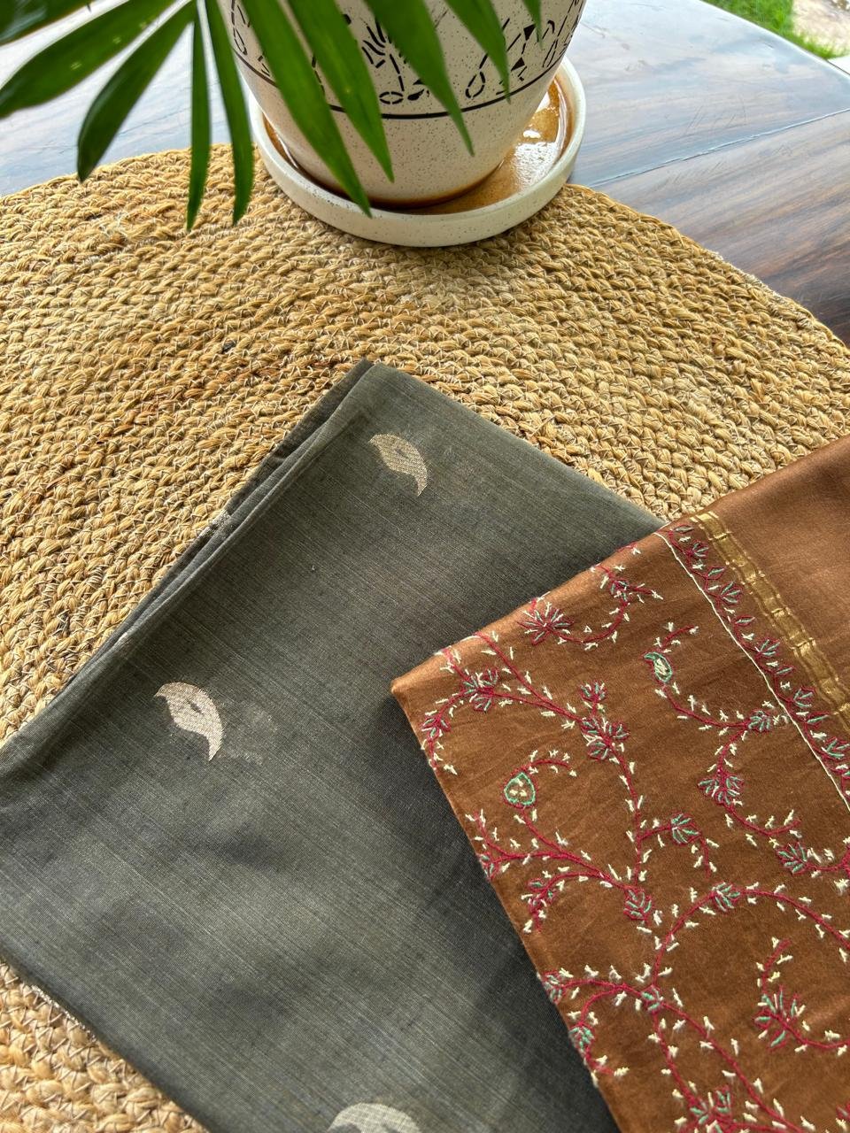 Dupatta: Pure chanderi silk cotton with sozni embroidery