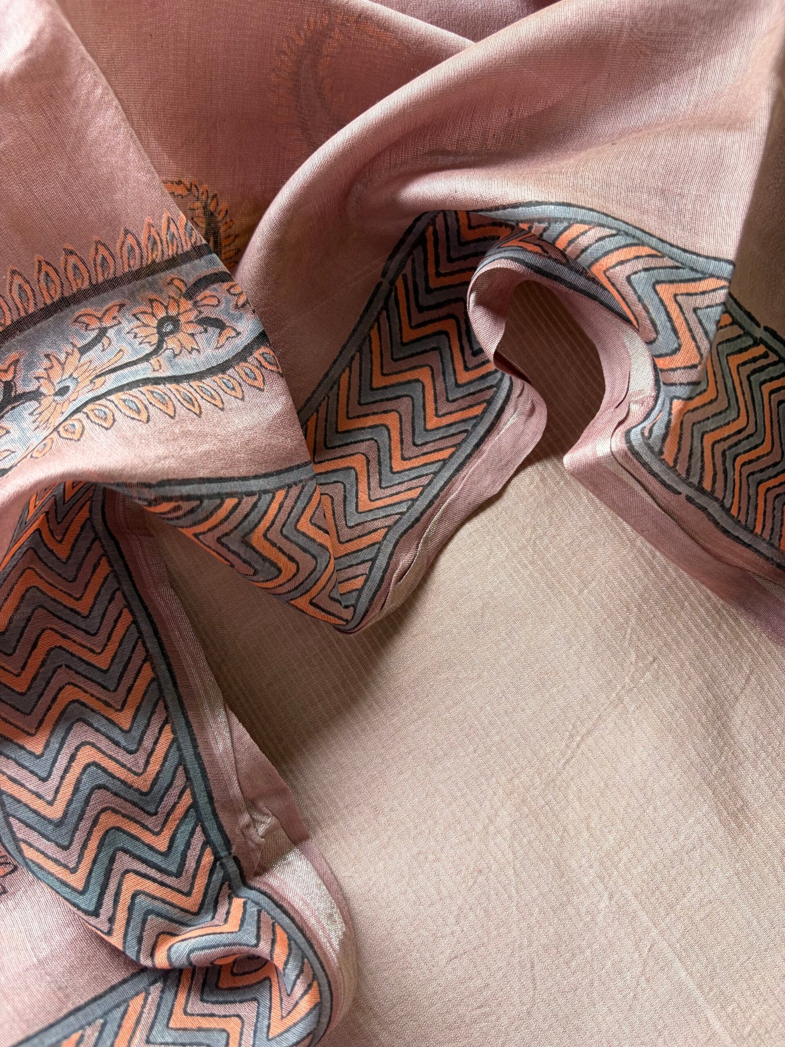 Dupatta: Pure hand block printed Chanderi silk cotton with zari border