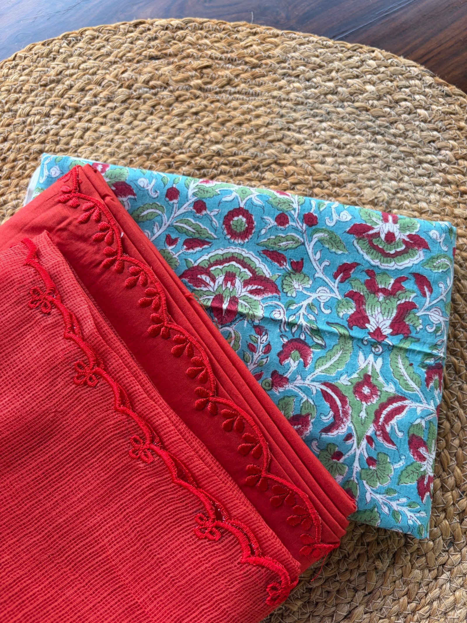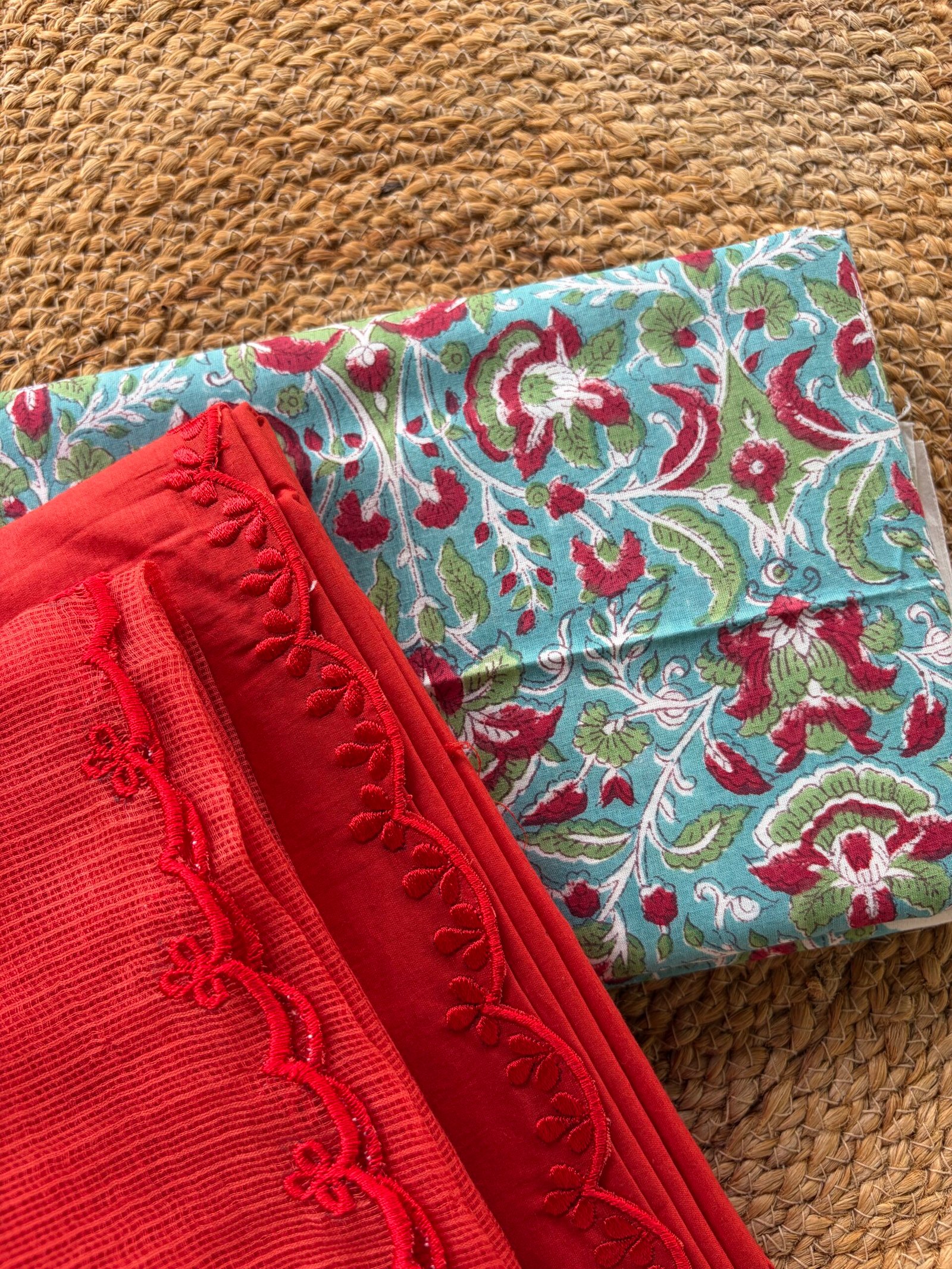Dupatta: Soft kota Cotton with scalloped edges and embroidery