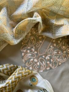 Bottom : Handblock printed cotton with embroidery