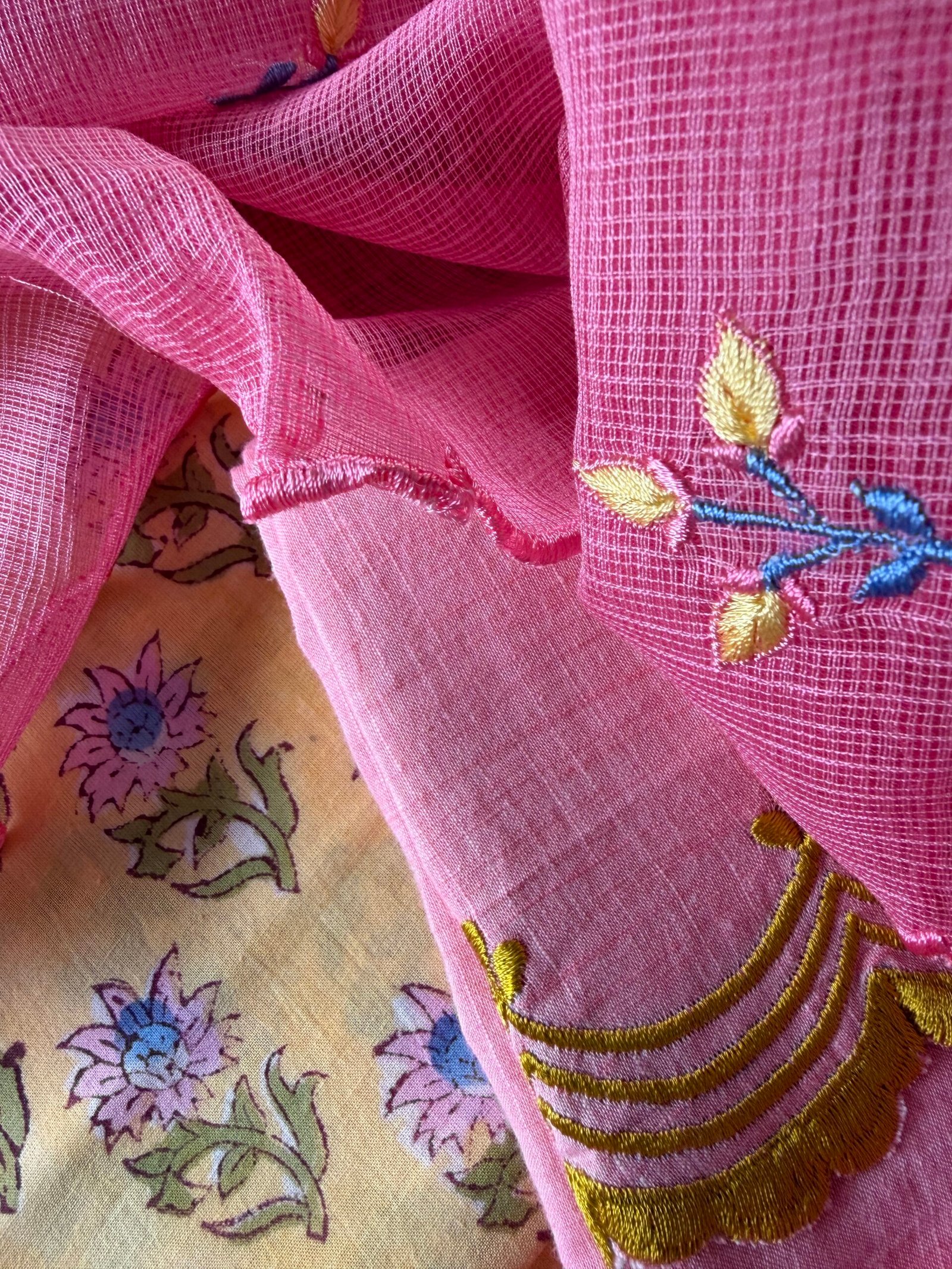Dupatta: Soft kota Cotton with scalloped edges and embroidery