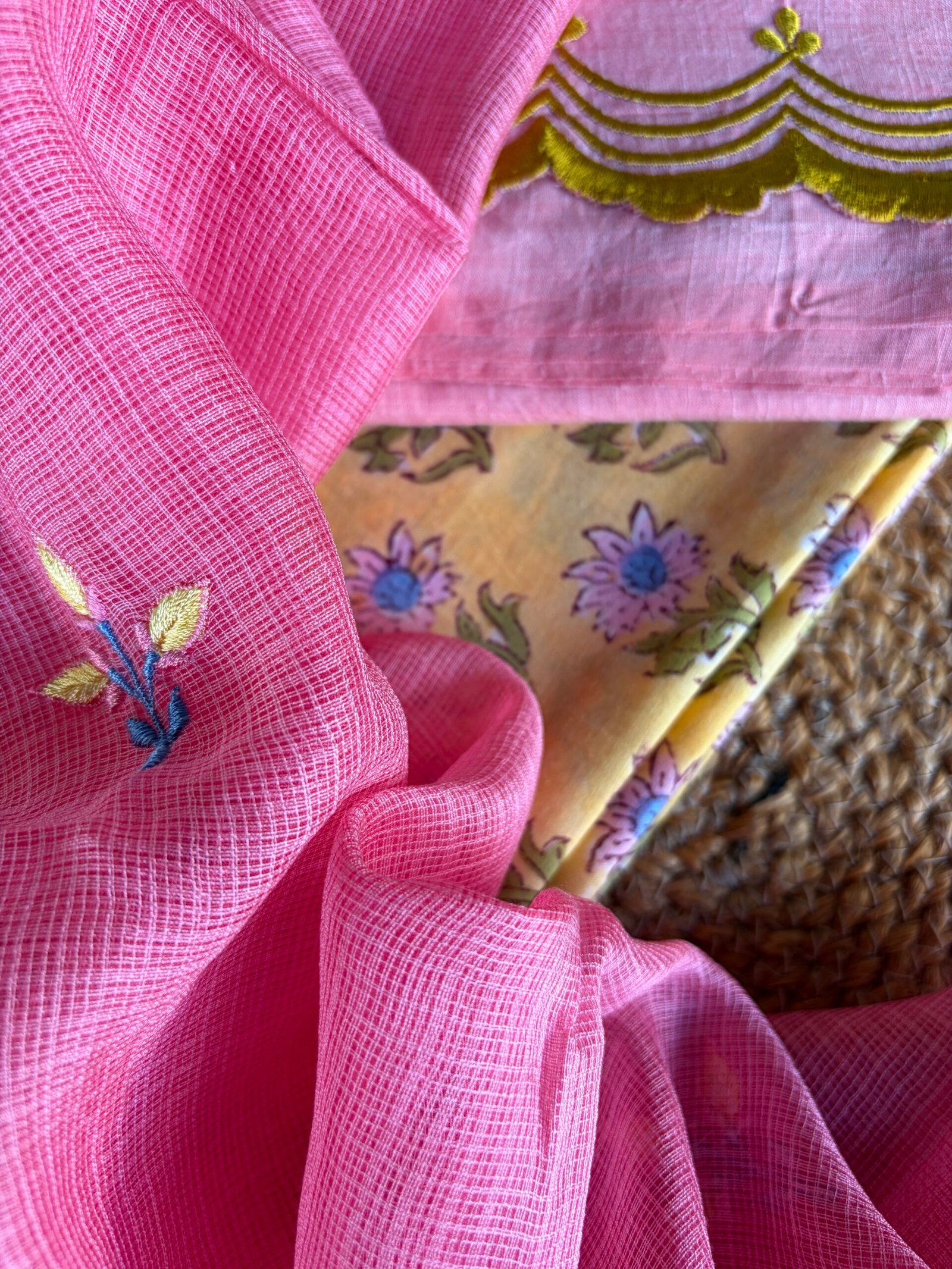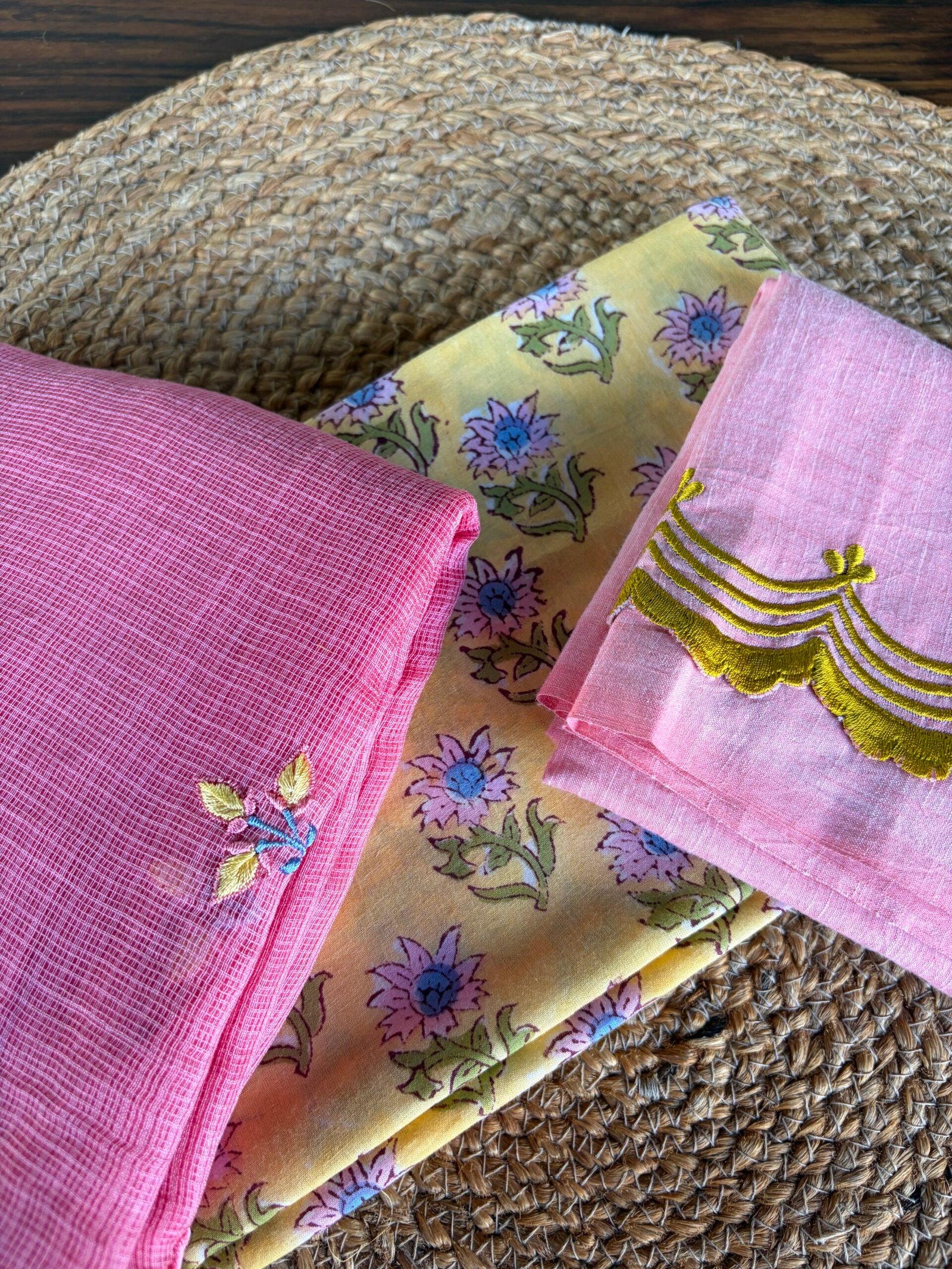 Bottom : Handblock printed cotton with embroidery