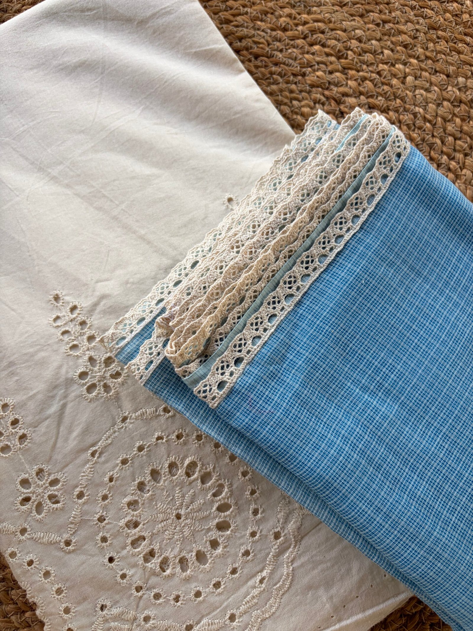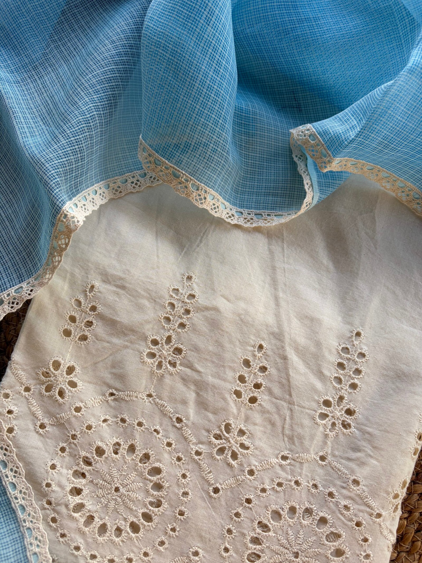COTTON HAKOBA TOP AND KOTA COTTON DUPATTA WITH LACE