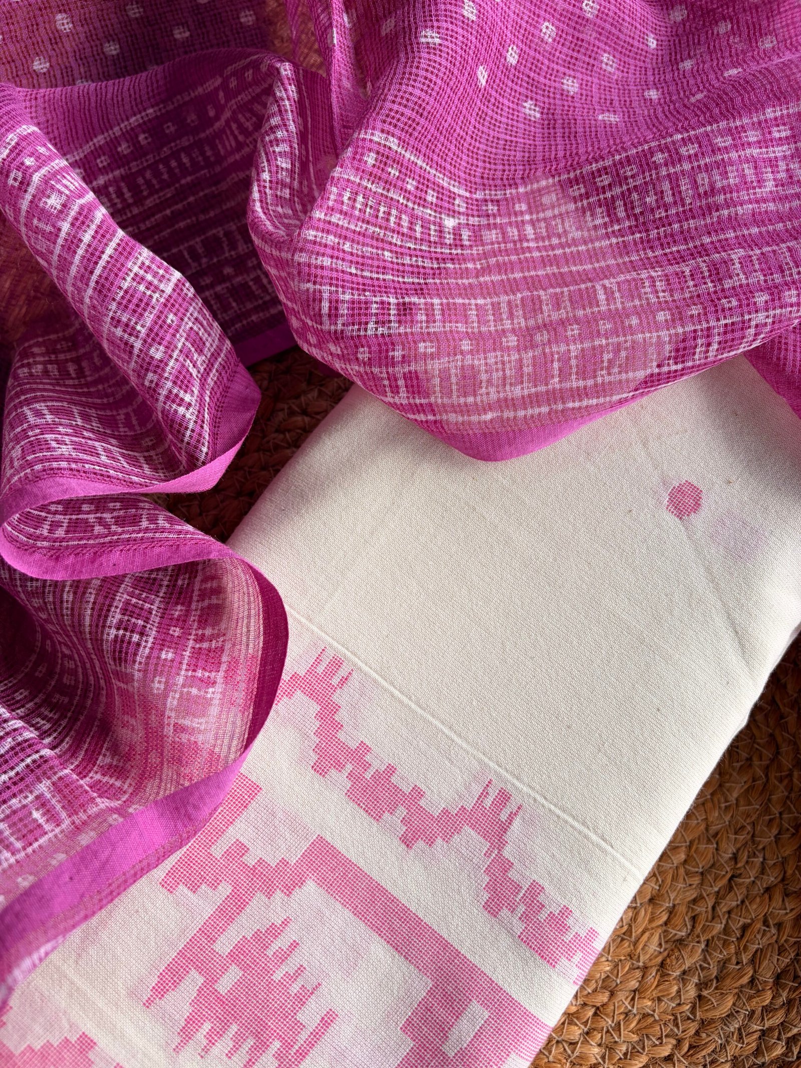 COTTON JAMDHANI WEAVE TOP AND KOTA COTTON HANDBLOCK PRINTED DUPATTA