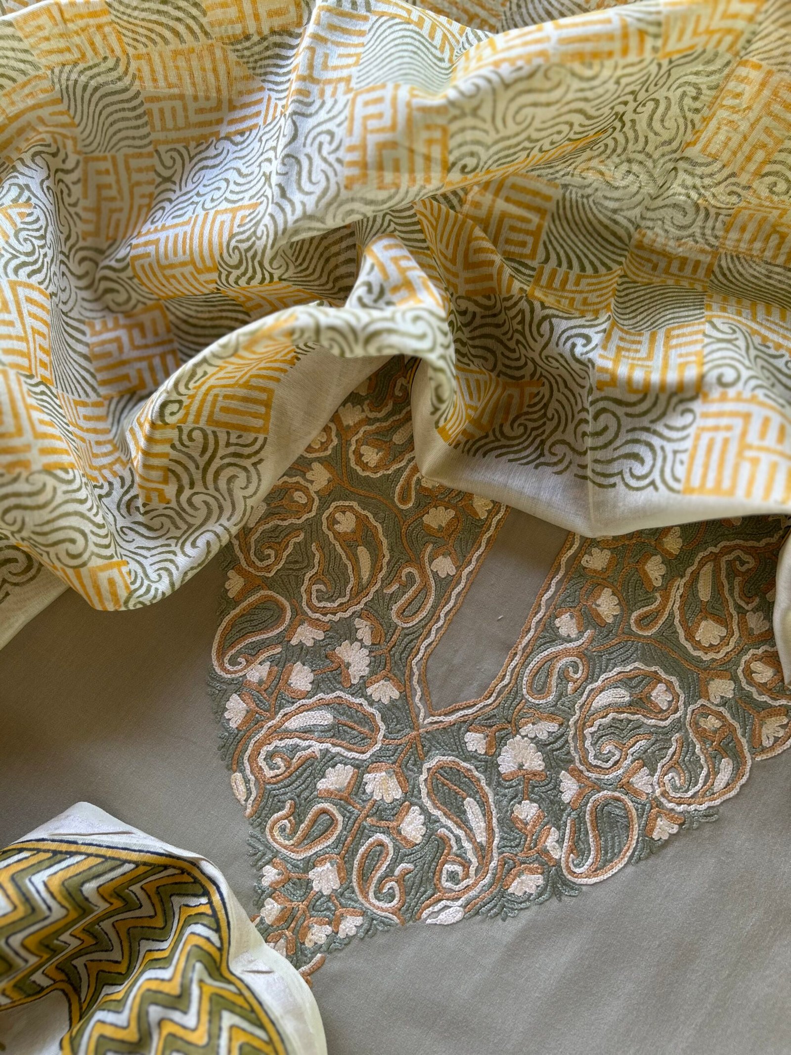 COTTON KASHMIRI AARI WORK TOP BOTTOM AND DUPATTA