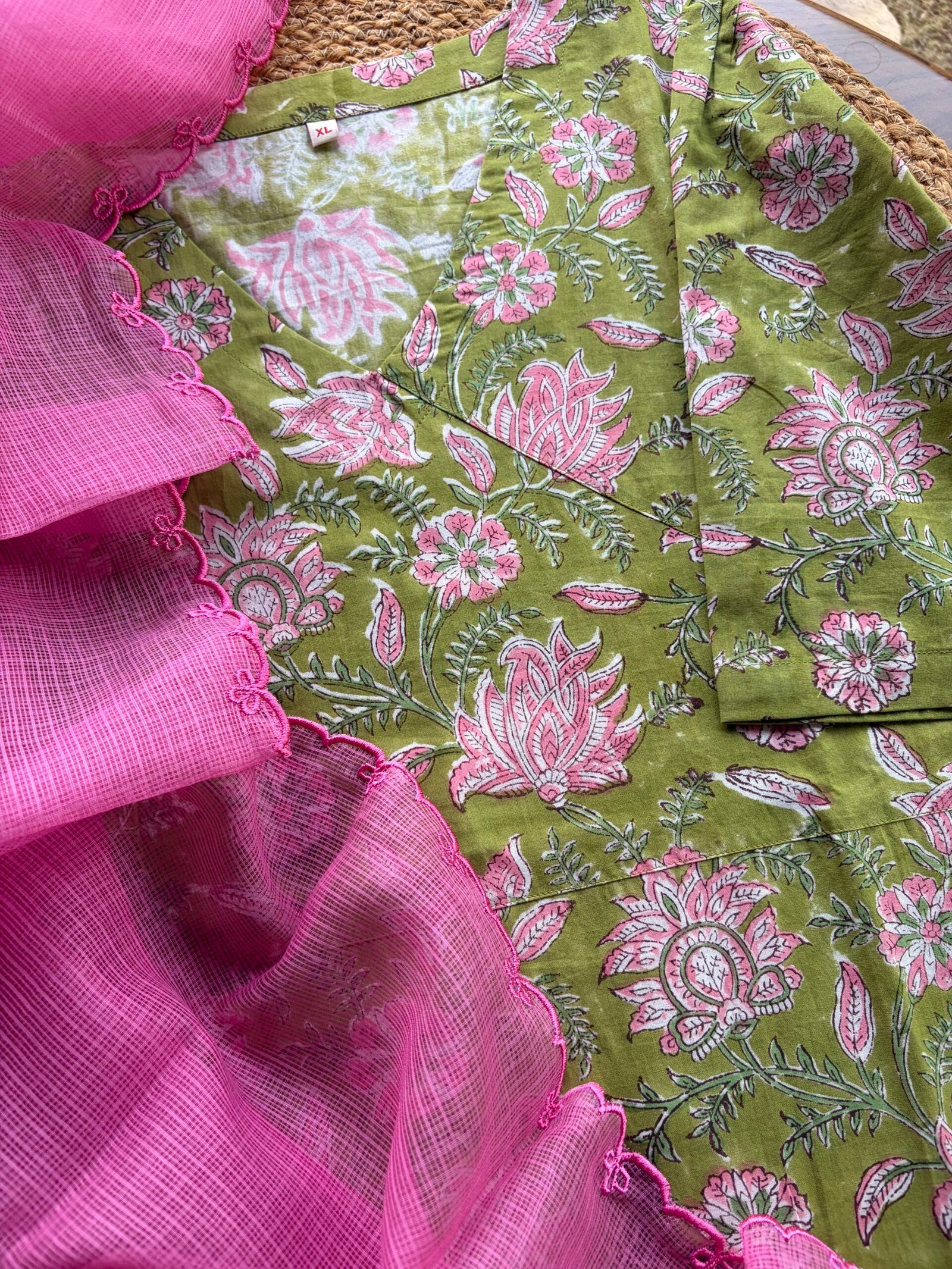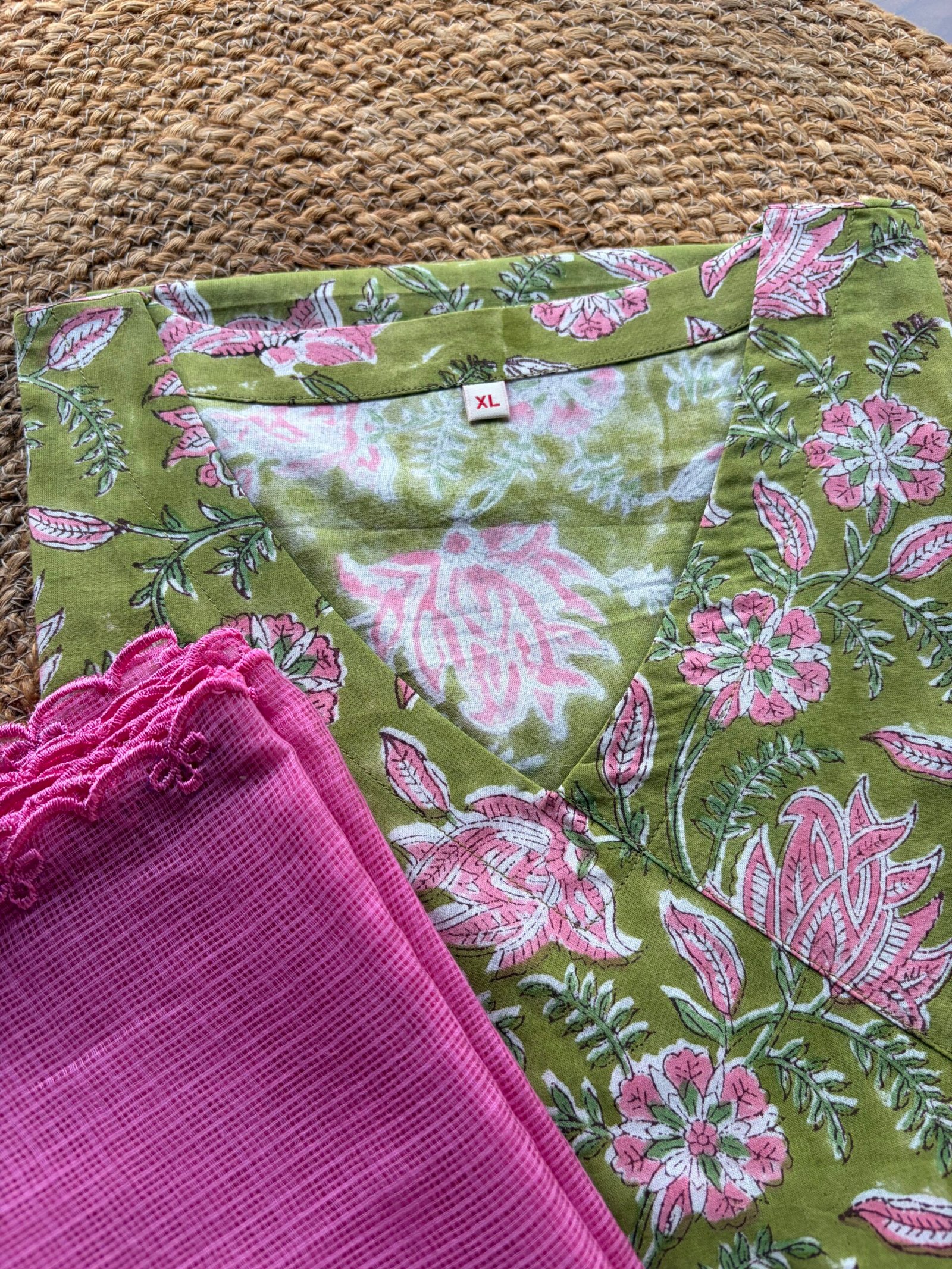 COTTON TOP WITH NECK WORK AND CHANDERI DUPATTA