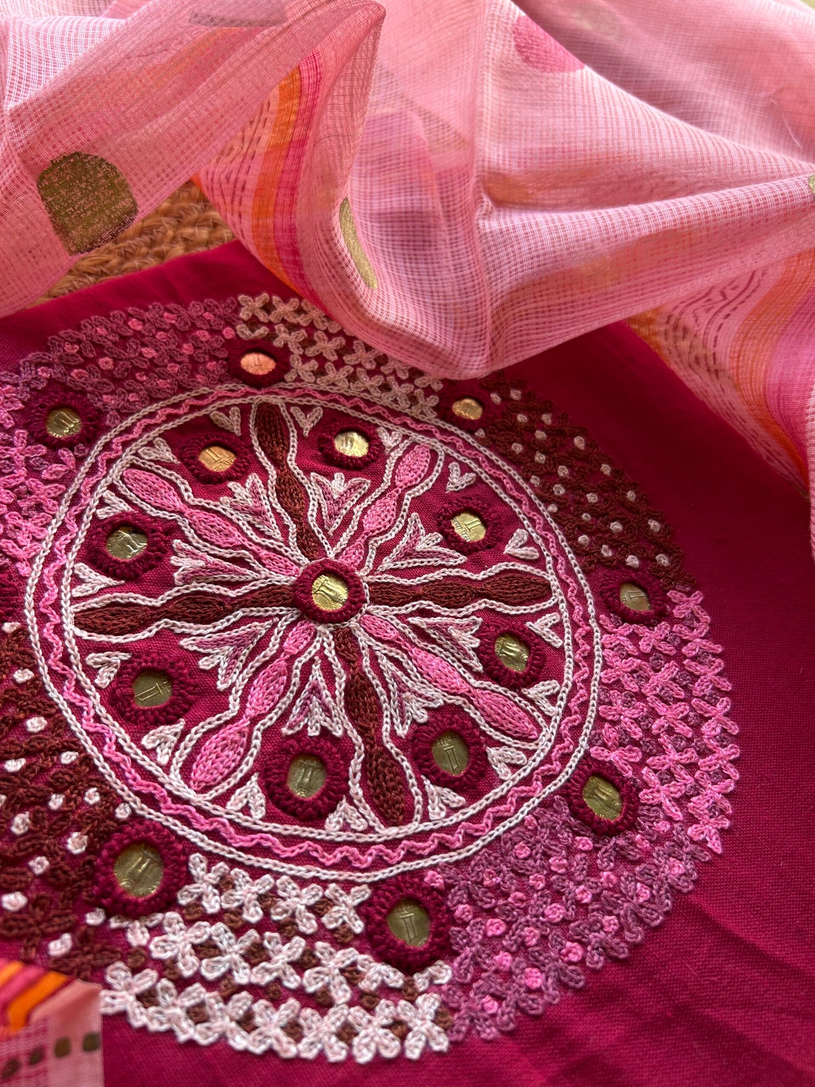 Top – Pure cotton with hand work in Kutch work on the yoke