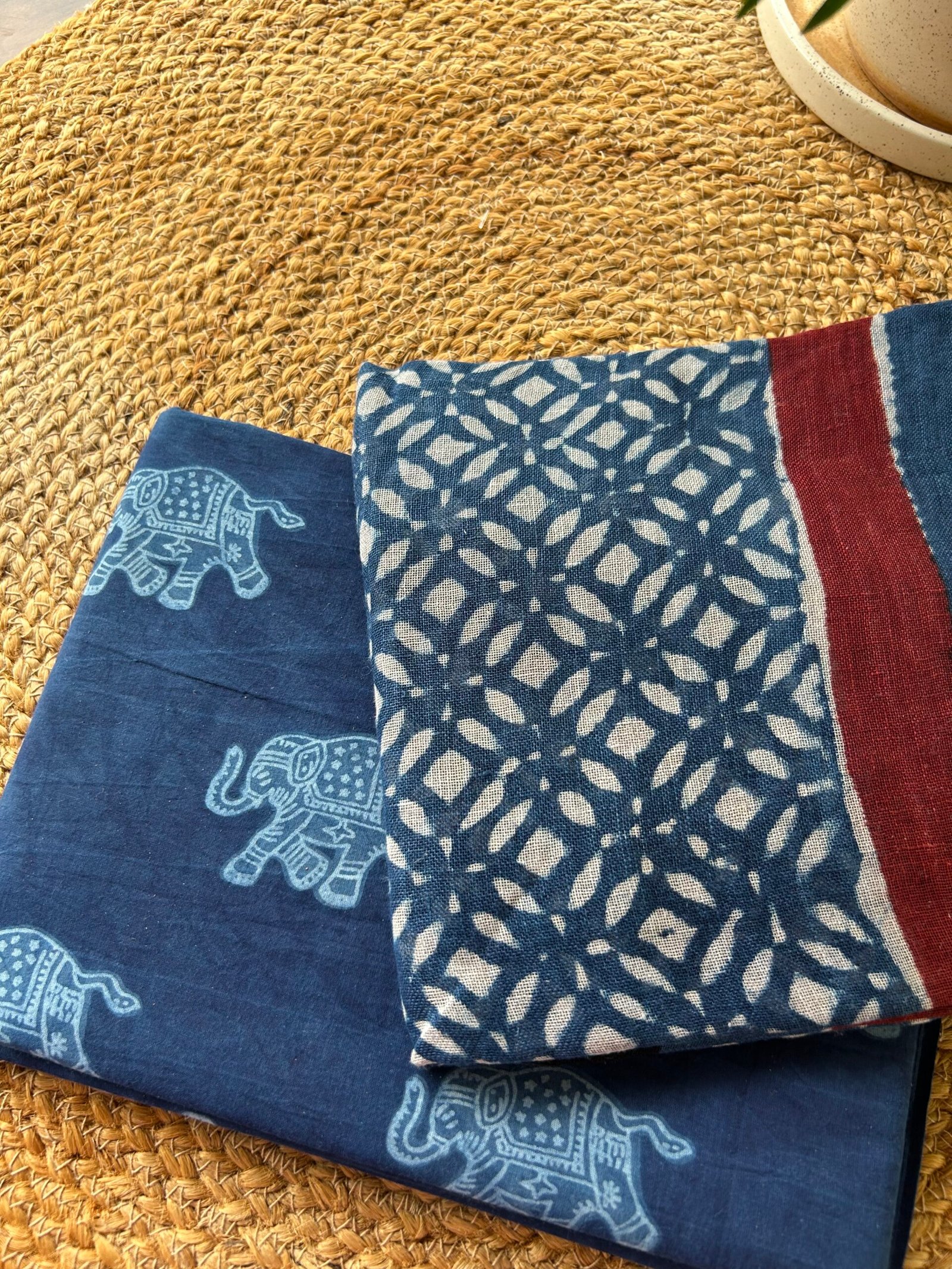 INDIGO HAND BLOCK PRINTED TOP AND LINEN DUPATTA