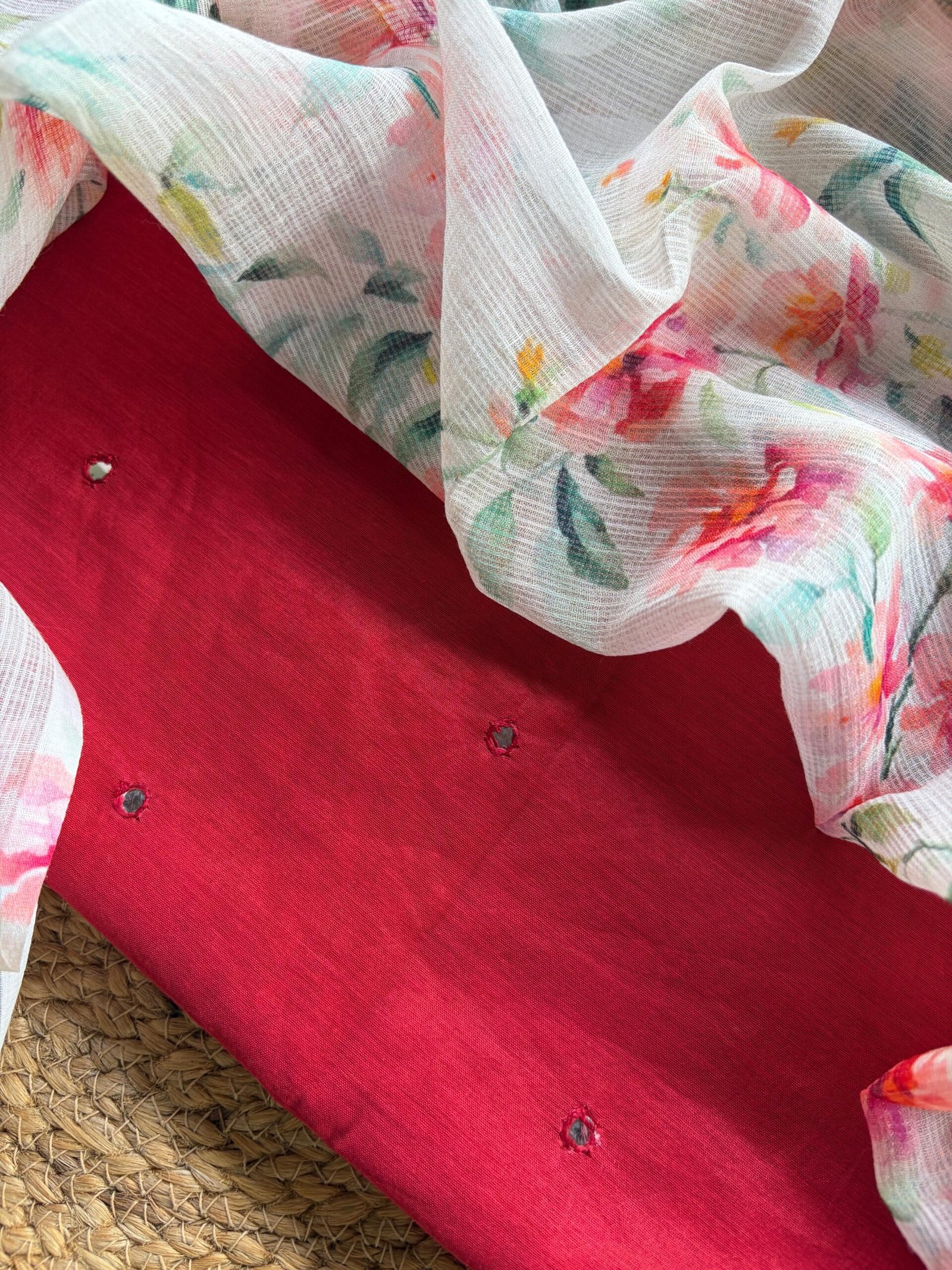 MUL CHANDERI SILK TOP AND KOTA PRINTED DUPATTA