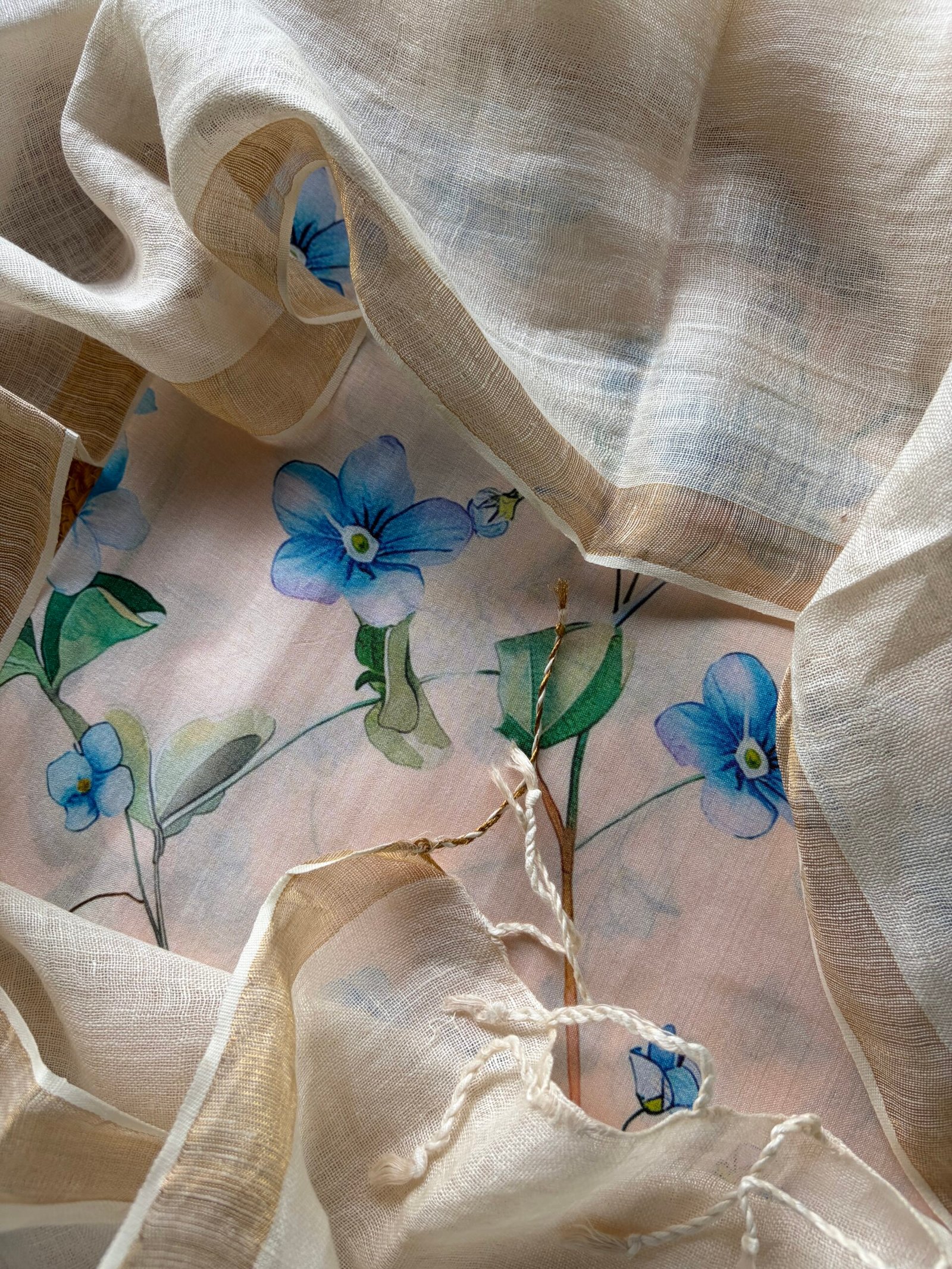 Dupatta: Pure linen with zari border and tassels