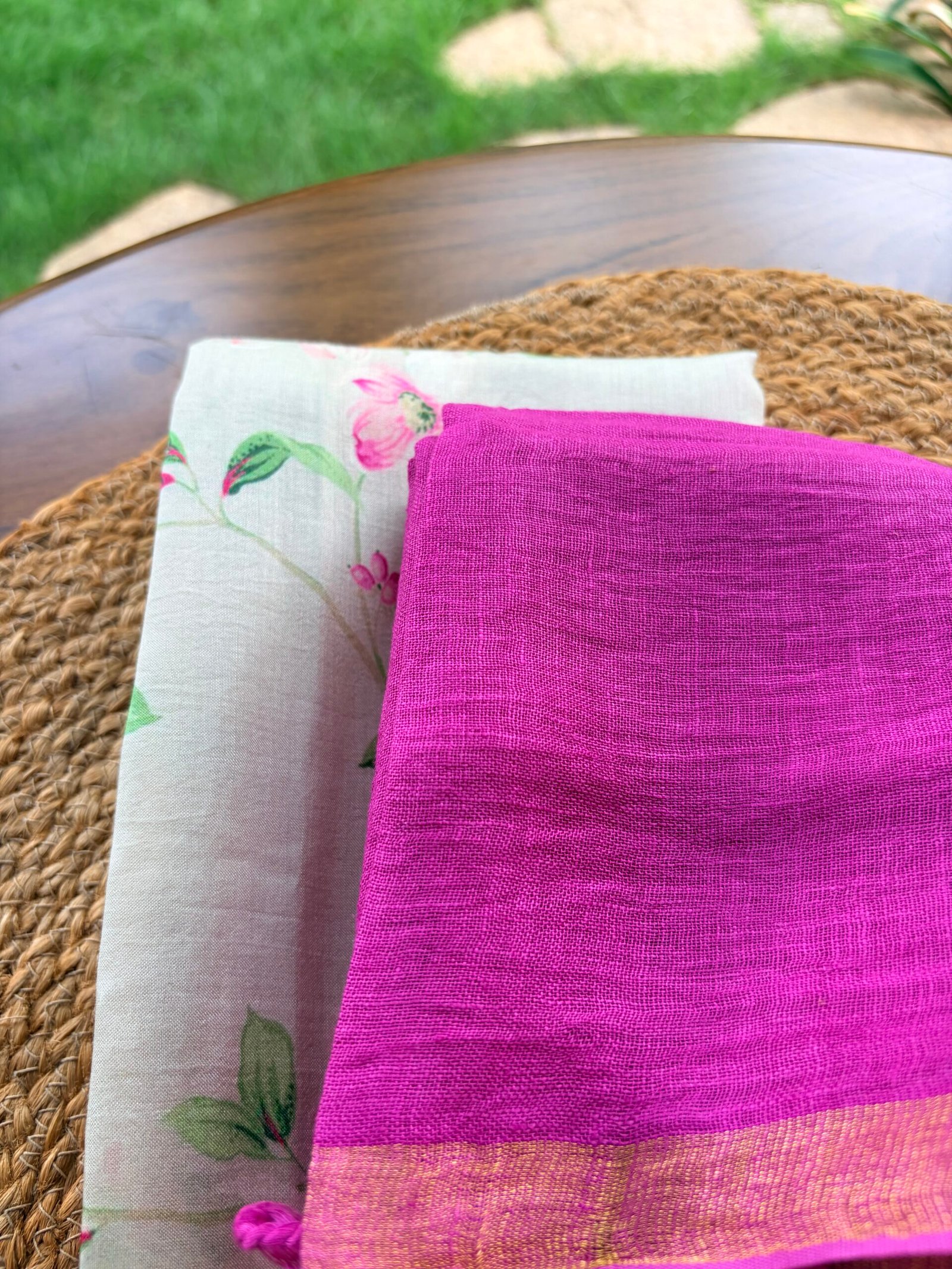 PRINTED SILK COTTON TOP AND LINEN DUPATTA