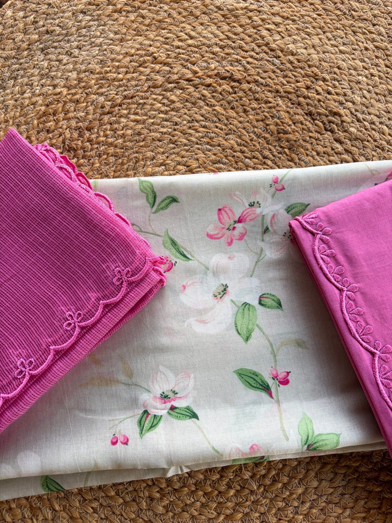 SILK COTTON TOP WITH KOTA EMBROIDED DUPATTA AND COTTON BOTTOM