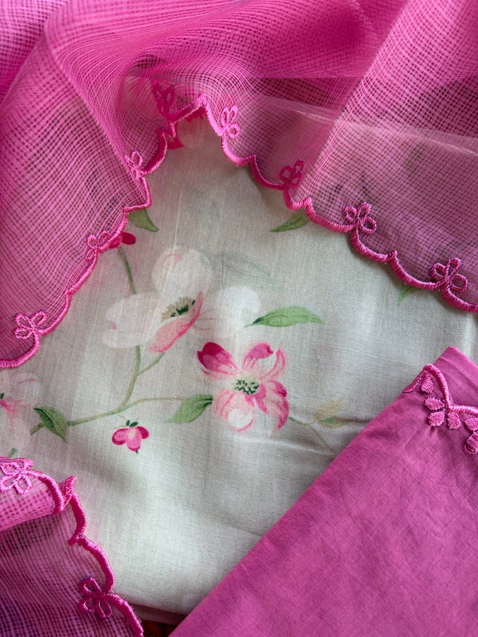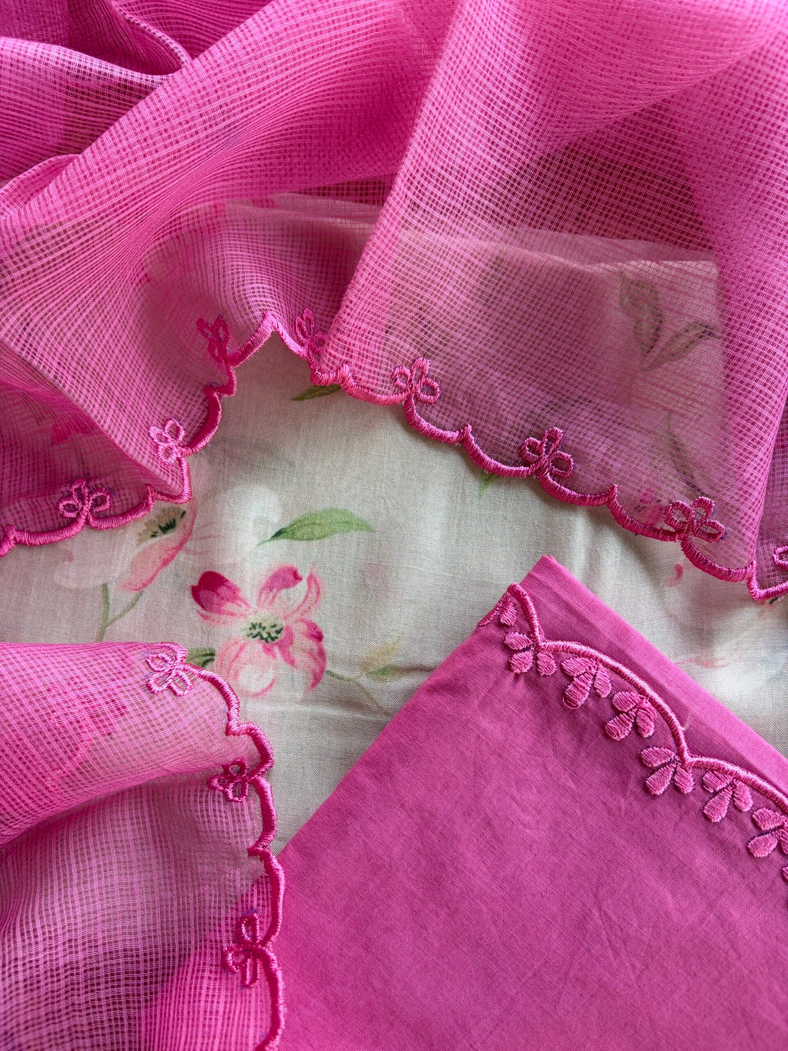 Dupatta: Soft Kota embroidery cotton and scalloped ends