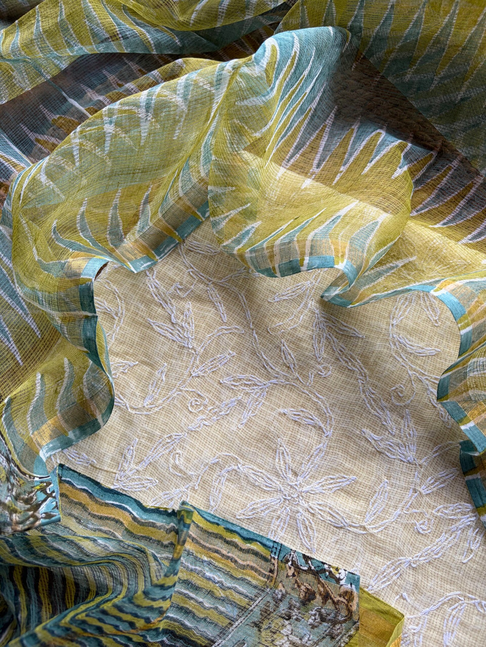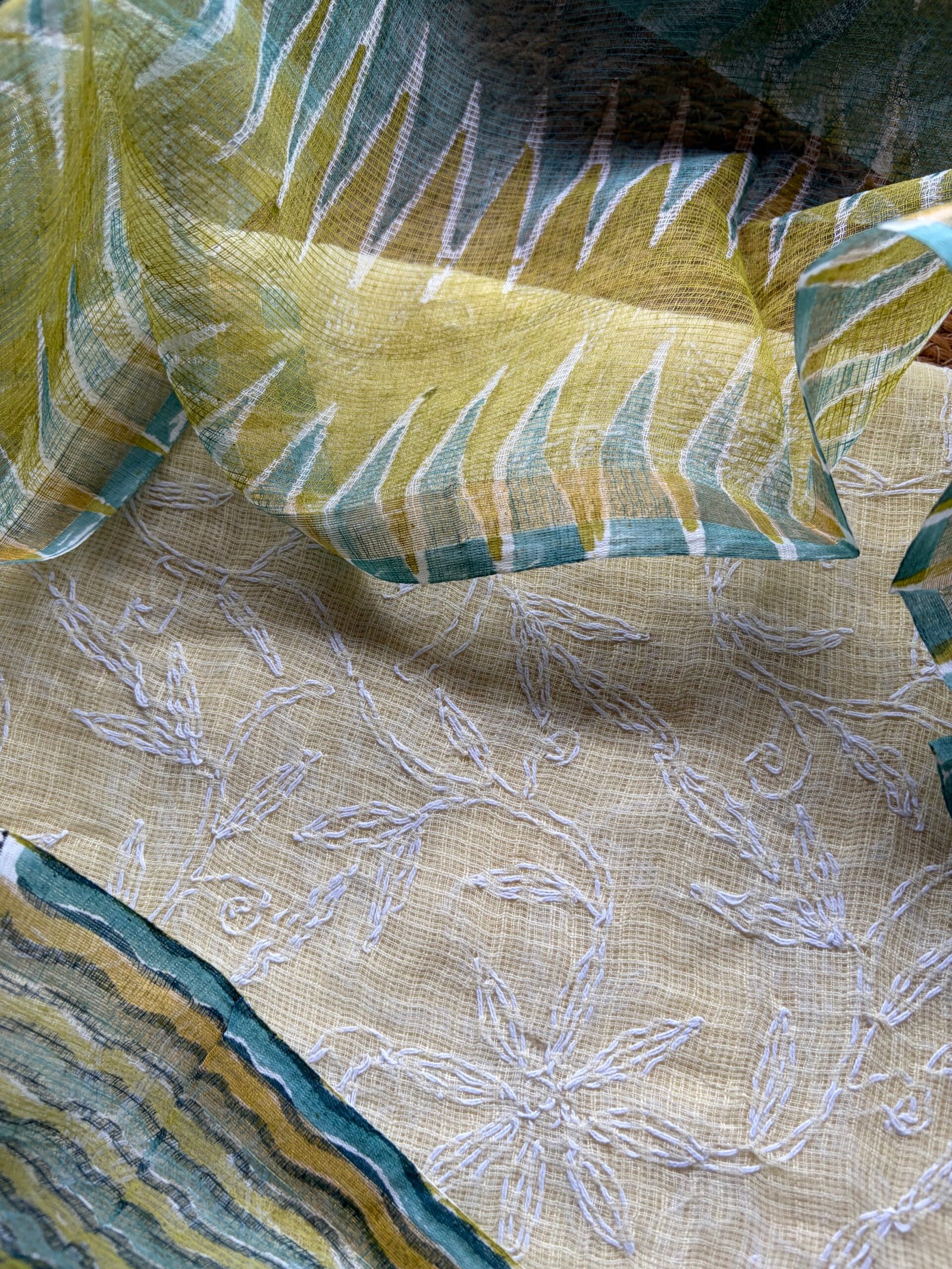 Dupatta: Hand Block Printed kota Cotton with zari border