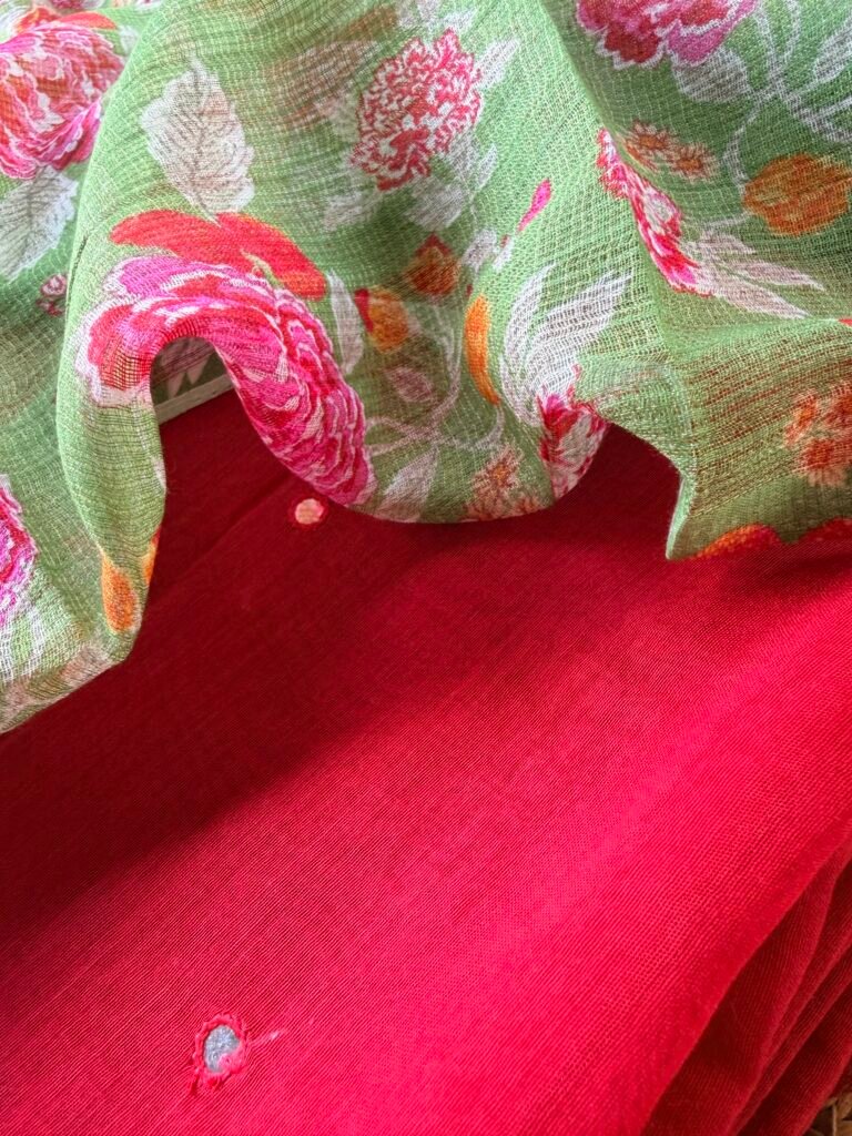 MUL CHANDERI SILK TOP AND KOTA PRINTED DUPATTA