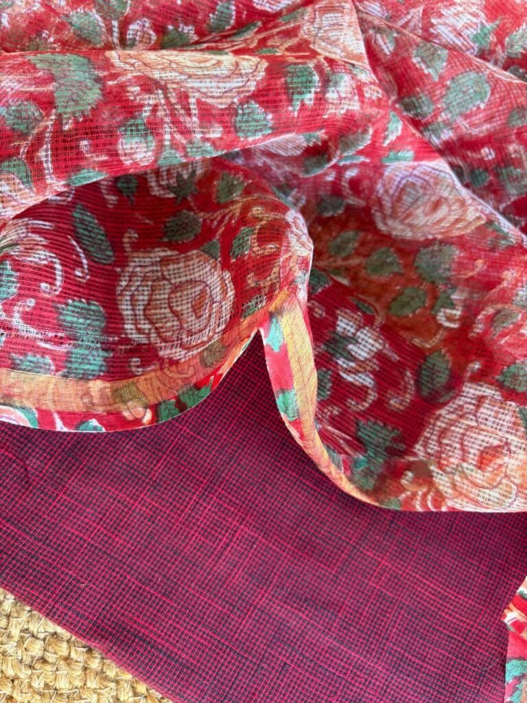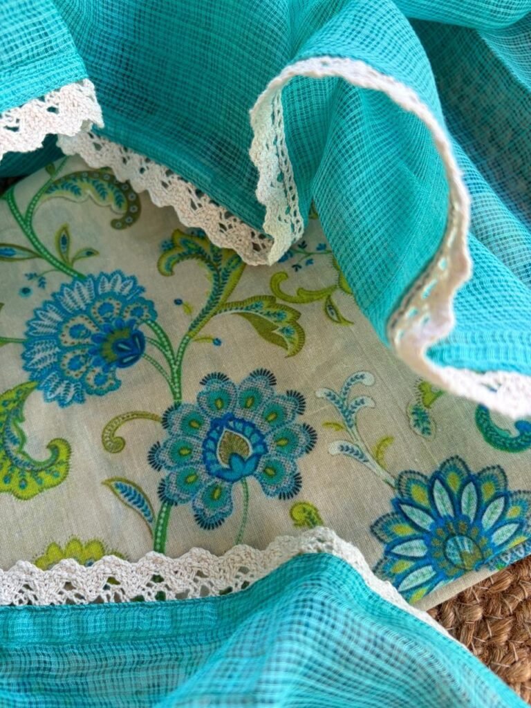PRINTED MULMUL COTTON TOP AND KOTA DUPATTA WITH LACE